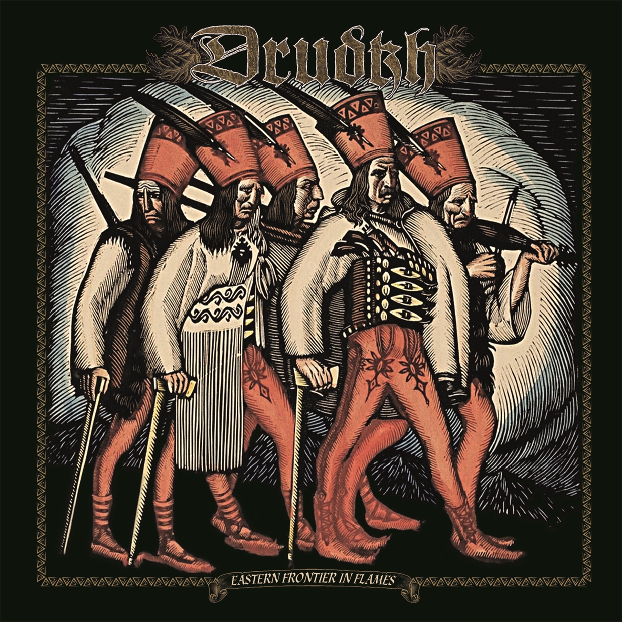 “Eastern Frontier in Flames” is the definitive collection of the long out-of-print and sought-after DRUDKH EP’s and split releases. “Eastern Frontier…” combines 2007’s “Anti-Urban” EP and the MASTER’S HAMMER and SACRILEGIUM covers on 2010’s “Slavonic Chronicles” with the recent half of their vinyl-only collaboration with WINTERFYLLETH. “Eastern Frontier in Flames” is an integral piece to any DRUDKH fan’s collection as their storied full-lengths.