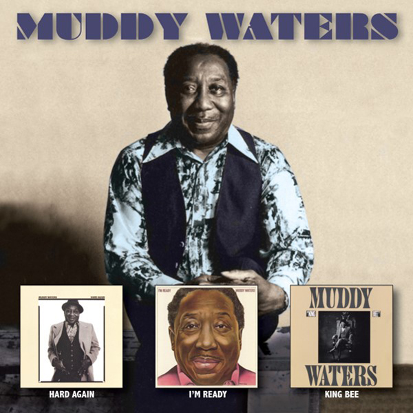 McKinley Morganfield, known professionally as Muddy Waters, was born in April 1913.  He was an American blues singer-songwriter and musician who is often cited as the “father of modern Chicago blues”, and an important figure on the post-war blues scene.The three albums on this compilation were some of his last recordings before he passed away in April 1983.  The first of the three – Hard Again (1977) – is widely regarded as one of Waters’ finest.  Recorded in all of three days, and produced by Johnny Winter on guitar and backing vocals, it featured Waters’ touring band, namely Pinetop Perkins (piano), ‘Steady Rollin’ Bob Margolin (guitar), Charles Calmese (bass), and Willie ‘Big Eyes’ Smith (drums), with the harmonica great James Cotton also weighing in with mighty contributions.  The other two albums – I’m Ready (1978) and King Bee (1981) – used the same line-up and are equally well regarded.